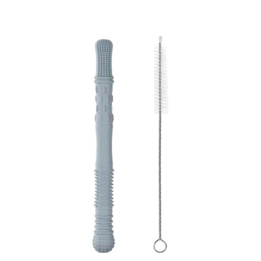 J4K Silicone tube teether with cleaning brush - 16cm - Grey